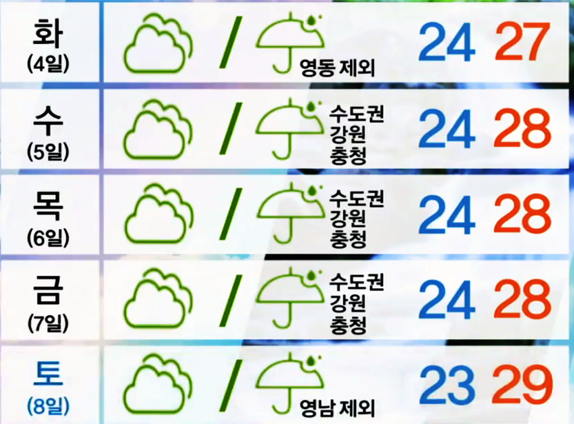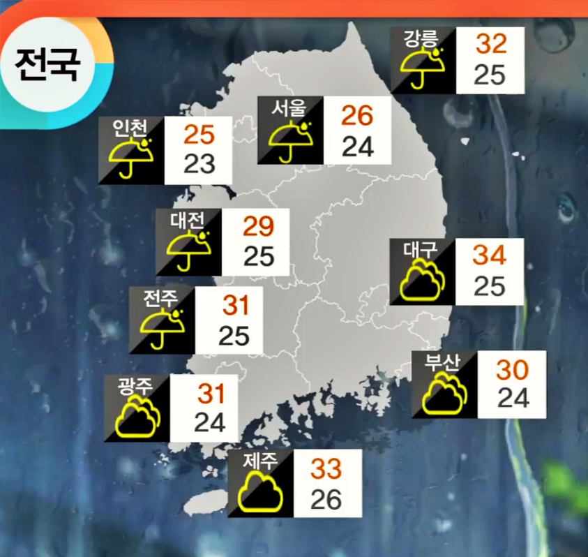 안녕하세요 오늘의 날씨, 오늘의 운세, 띠별 운세를 알아보는 시간입니다. 주말 동안에 무더웠던 곳도 있도 비가 왔던 지역도 있네요 이번 여름 장마는 꽤나 오래 지속되고 있는 거 같습니다. 언제쯤 장맛비가 그칠지 궁금하기도 합니다.
